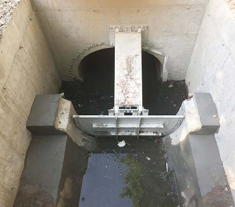 閑置期間,攔蓄門可以鎖定在攔蓄截斷面的上方,不占用管道任何排水空間。雨季時,攔蓄門保持開啟狀態,不會影響管道的排水功能。斷電時,亦可保持開啟狀態。