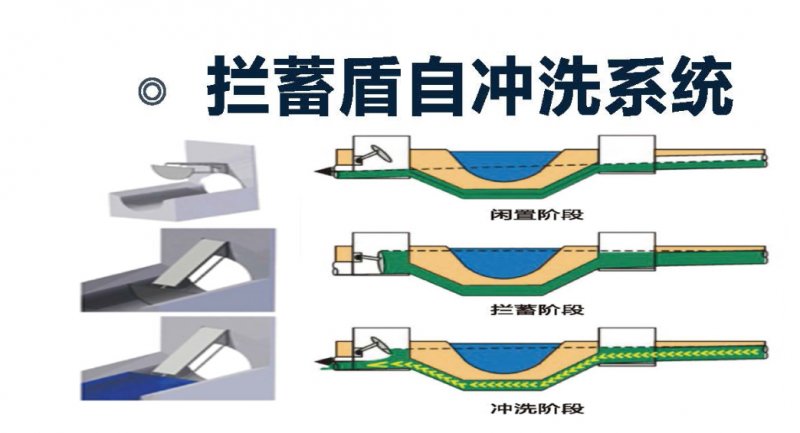 管道攔蓄自沖洗系統(簡稱攔蓄盾)既是產品,也是系統,它用來對較大的管道、整個管網進行整體優化,也用來對單個管段進行優化。